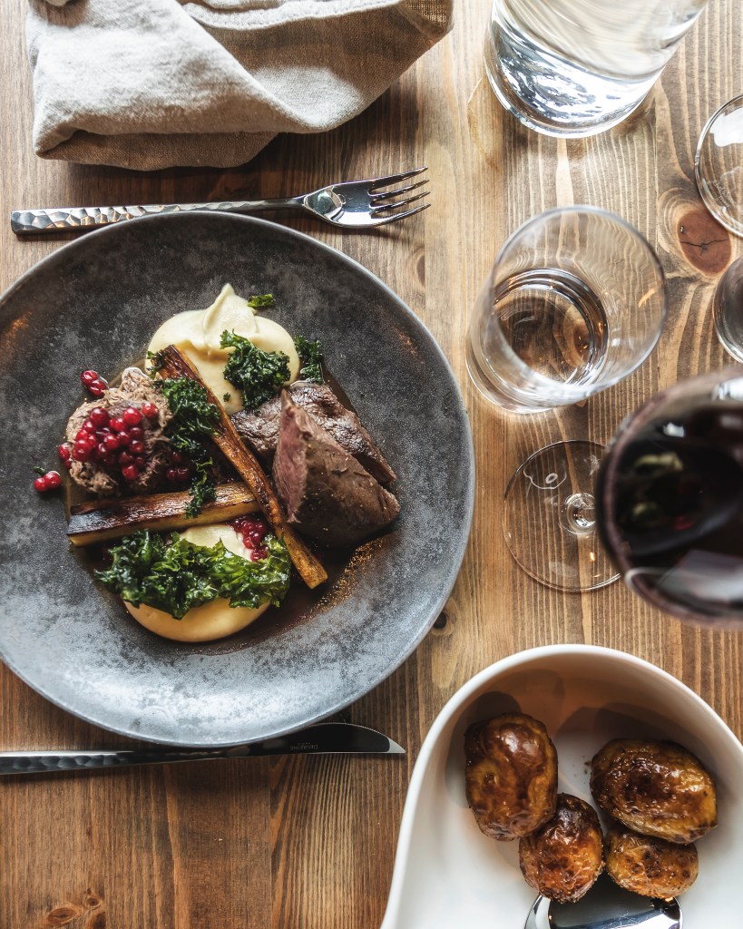 Cahkal Hotellilla nukut mukavasti upeissa maisemahuoneissa. Hotellin Aika-ravintola on kerännyt kehuja ja tarjoaa herkullisia annoksia Lappilaisista raaka-aineista. Vaikka annokset ovat maultaan fine dining- tasoa, annoskoot ovat sellaisia, että niillä hiihtäjä tai kalastajakin pärjää mainiosti!